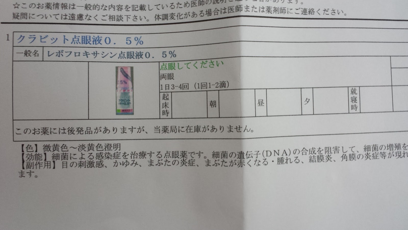 次は薬情を写メってみる。