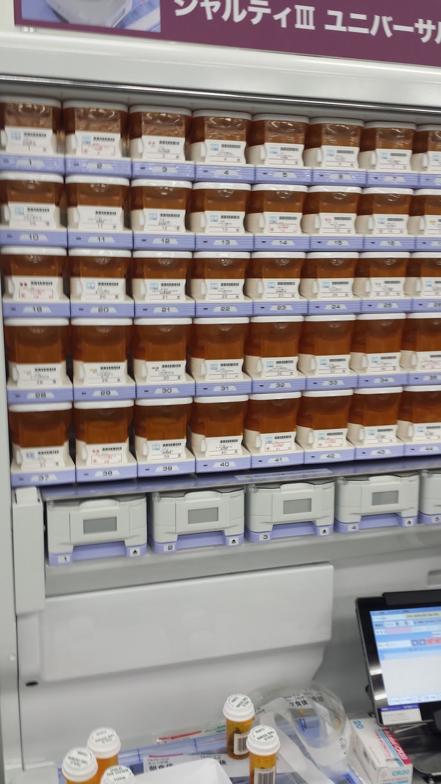 そうそう、上部の錠剤入れるカセットたくさんあるけど、あれは全自動の錠剤供給機ね。錠剤をバラでジャラジャラいれとくと自動で一包化してくれるものですが、こちらのユニットは着脱可能で一包化が多い施設などは購入します。